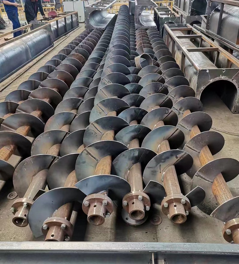 螺旋葉片主要用于輸送粘度較大和可壓縮性物料,這種螺旋面型,在完成輸送作業(yè)過(guò)程中,同時(shí)具有并完成對(duì)物料的攪拌、混合等功能。螺旋輸送機(jī)的螺旋葉片有實(shí)體螺旋面、帶式螺旋面和葉片螺旋面三種形式。